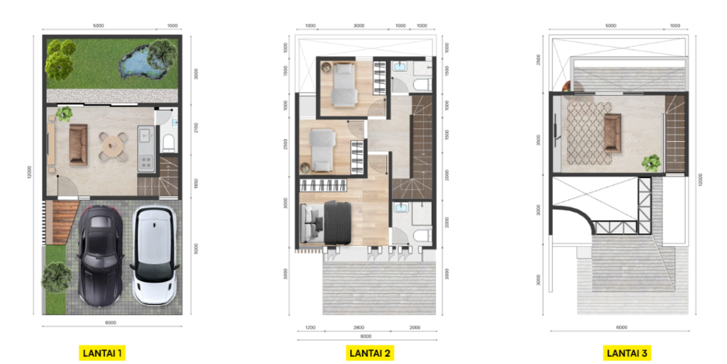 Rumah 3 Lantai berkonsep Tropical Resort dengan Tata Ruang Efisien dan Lega, Ventilasi Udara dan Pencahayaan Alami yang optimal dan mayoritas unit sudah dilengkapi dengan kamar ART dan service area